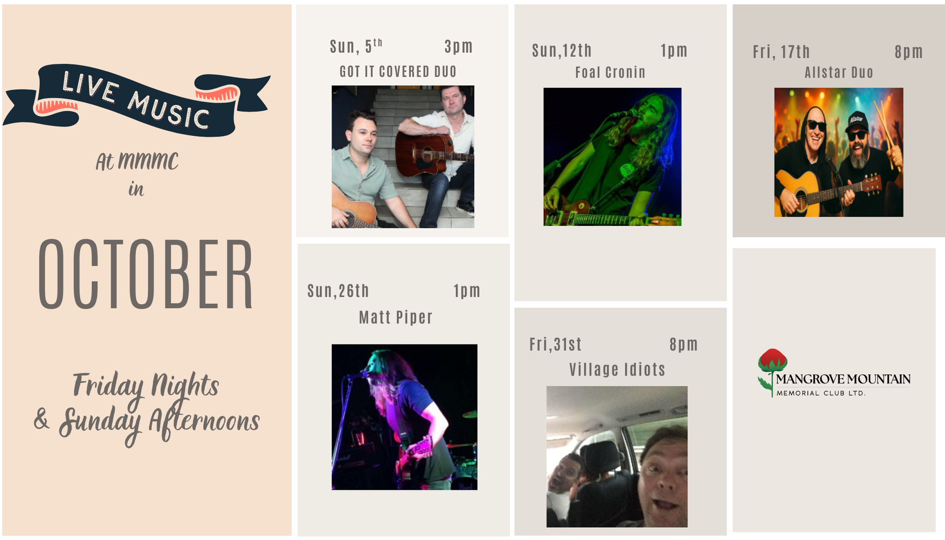 There's never a dull moment at Mangrove Mountain Memorial Club! We keep the excitement going daily, from pool competitions to bingo, darts, and twice-weekly meat raffles. Join us for cocktail hours, footy tipping, live music, and happy hours on Friday and Saturday nights. Plus, don't miss our weekly members' badge draw for your chance to win big. With something for everyone, our club is the perfect place to unwind, socialise, and enjoy various activities and events. Join the fun and be a part of our vibrant community!