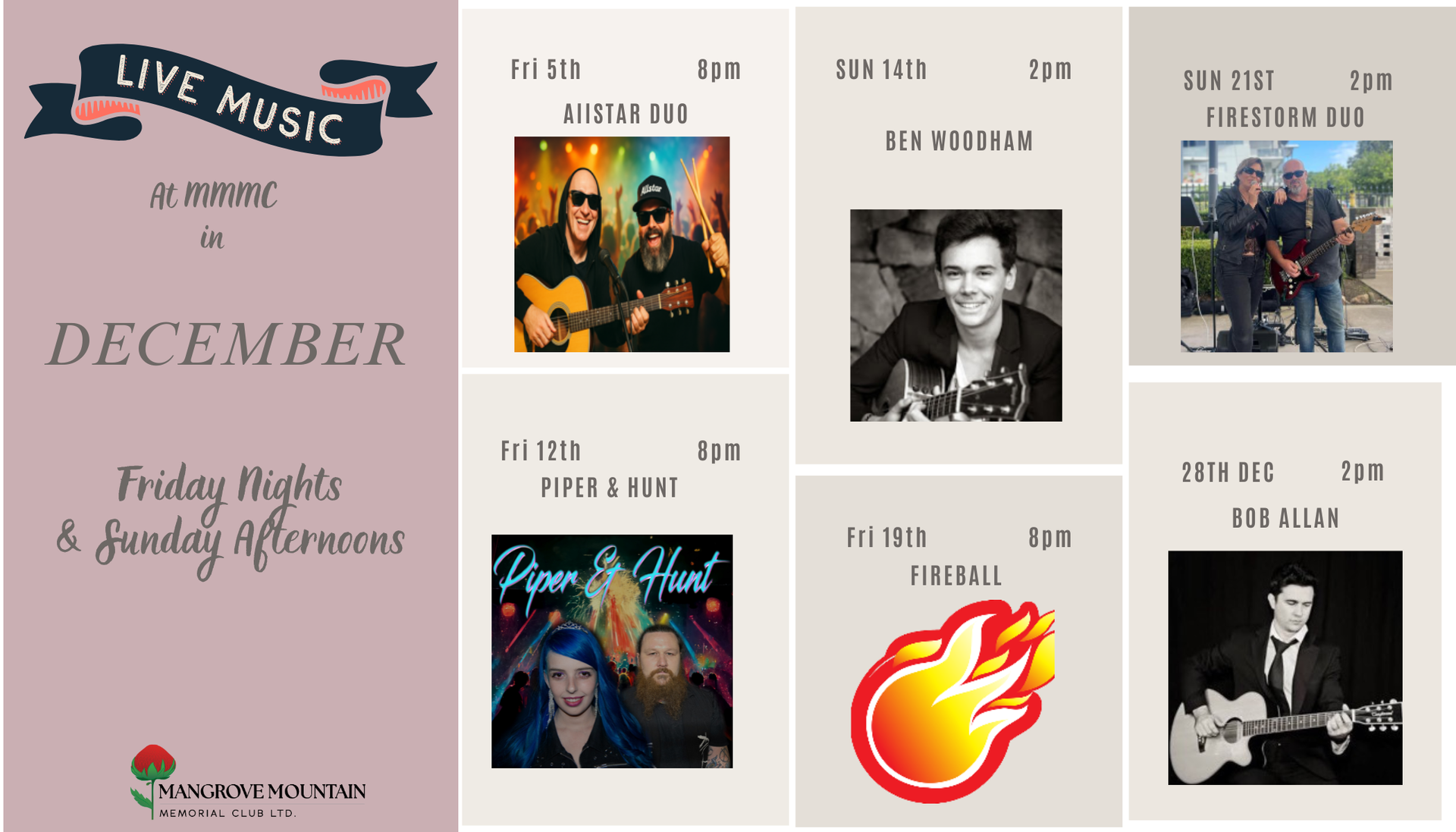 There's never a dull moment at Mangrove Mountain Memorial Club! We keep the excitement going daily, from pool competitions to bingo, darts, and twice-weekly meat raffles. Join us for cocktail hours, footy tipping, live music, and happy hours on Friday and Saturday nights. Plus, don't miss our weekly members' badge draw for your chance to win big. With something for everyone, our club is the perfect place to unwind, socialise, and enjoy various activities and events. Join the fun and be a part of our vibrant community!